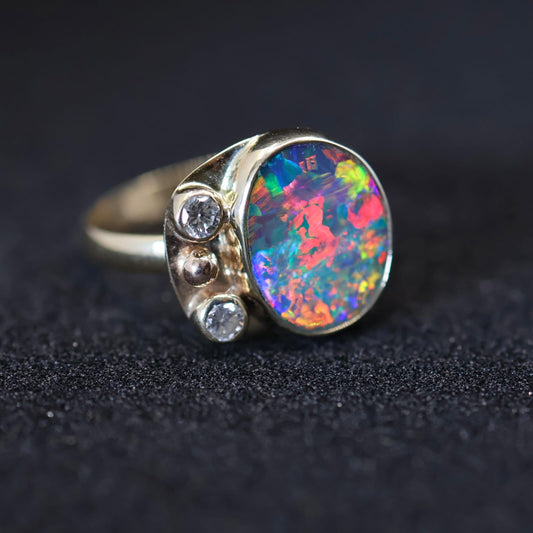 Lightning Ridge Doublet Opal Ring Set in 9ct Yellow Gold with DiamondsRegular price $2,950.00Regular price $2,950.00 Sale priceUnit price per$5,800.00Sold out
