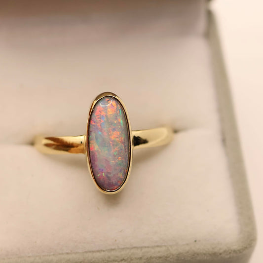 Lightning Ridge Crystal Opal Ring Set in 9ct Yellow GoldRegular price $2,550.00Regular price $2,550.00 Sale priceUnit price per$6,600.0061%