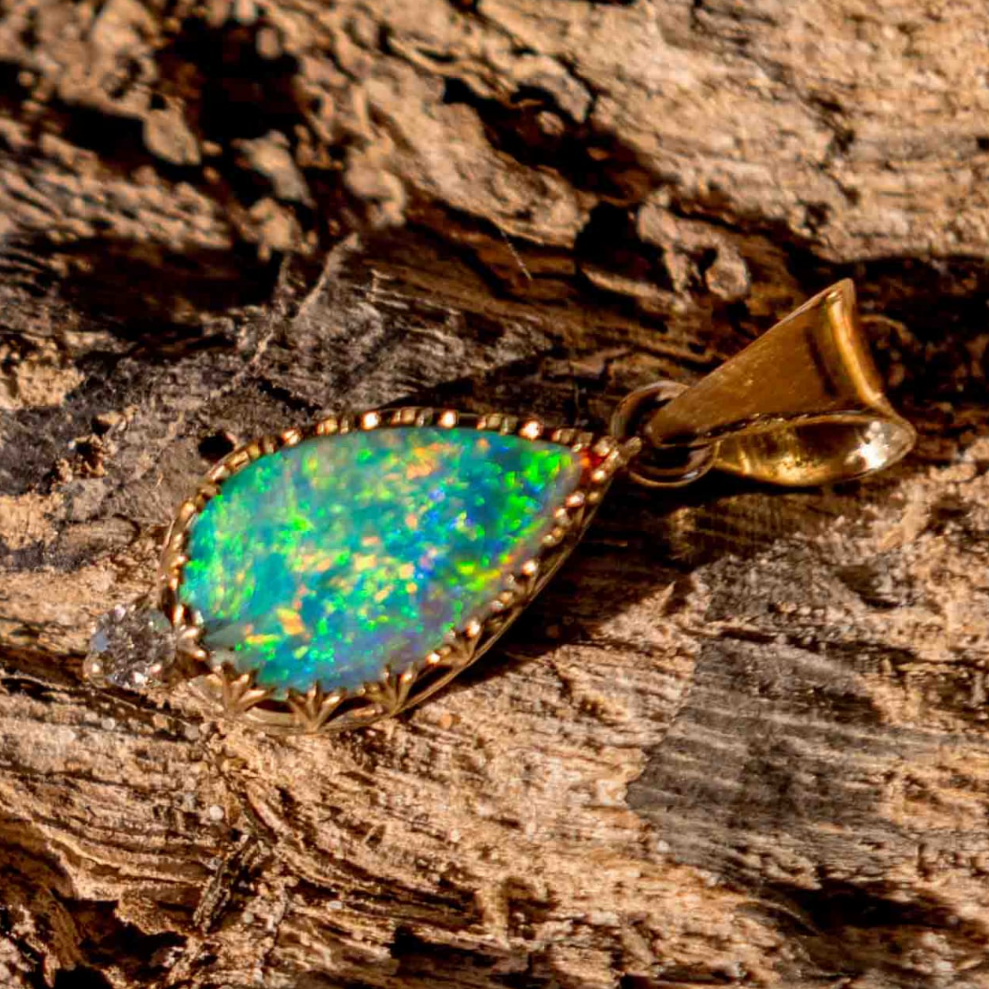 Lightning Ridge Opal Set in 9ct Yellow Gold with Diamond
