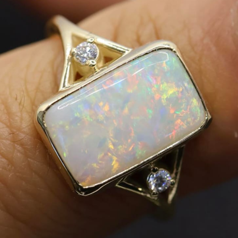 Coober Pedy White Opal Ring Set in 9ct Yellow Gold